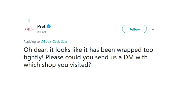 This Tweet was already on 14. Dec. 2018 when I mentioned the 1 minute pressure. And Pret’s typical “oh no” response they do in almost every Tweet:
