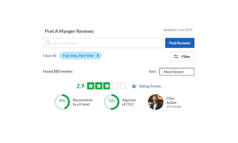 Staff died, the work conditions are horrendous, and yet Clive Schlee, CEO and Pano Christou, COO (who deleted his Twitter account when I tweeted Schlee’s retirement to the Press) go full steam ahead, doing business as usual, fooling the public with sweet-talk and free coffees. And all this now under the new owners JAB / Reimann, expanding in the U.S. where Brexit is a far distance. The COO position in Pret is new since JAB purchased Pret. Pano Christou (who came from McDonald’s management before joining Pret) was before the JAB takeover Pret’s UK Managing Director, a position held before by Andrew Walker, who then became the CEO of EAT…which is now purchased by Pret (well, by JAB really!). And I always find it interesting in Pano Christou’s case who likes to keep a low profie and even has on his Twitter profile “@ Pret” not connected to “@Pret”. Don’t want to spilt hairs, but why I mention this is that Pret A Manger leadership is notorious for hiding behind a facade and not take responsibility, but blame downwards! This reflects on manager after manager, leader after leader I have worked with and so many in the below reviews complain about.