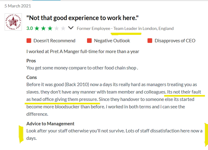 For more reviews of shop managers, OPs managers and HQ staff (and it’s not good!) on Pret’s leadership between 2020 – September 2023, please see Pano Christou’s Reputation post. And even those are just the tip of the iceberg.