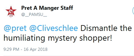 These kinds of comments I have read hundreds of time in my years in Pret. Extremely patronizing, unemphatic, and the power that Mystery Shoppers enjoy to want to have a conversation with and attention of a low-wage staff member who is burnt out. Depending on the business of a particular shop, but from my experience, a Team Member EASILY serves 300 – 500 people per day. And Pret expects them to smile, chat, give eye contact, kiss butt all day every day, and now even for no extra money. If staff don’t join Unions and go on strike they will continue to be degraded like this.