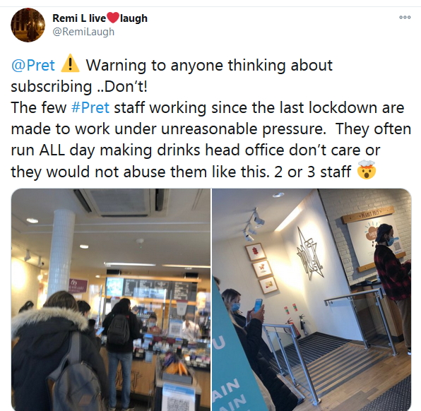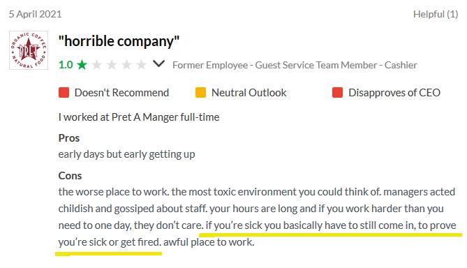 I’m always contacted by frustrated Pret staff about issues I write about that they can relate to on what’s happening behind the scenes. Recent complaints are that staff get fired when they call sick more often, or they have to continue to work even while having Covid symptoms (fever, coughing etc.)