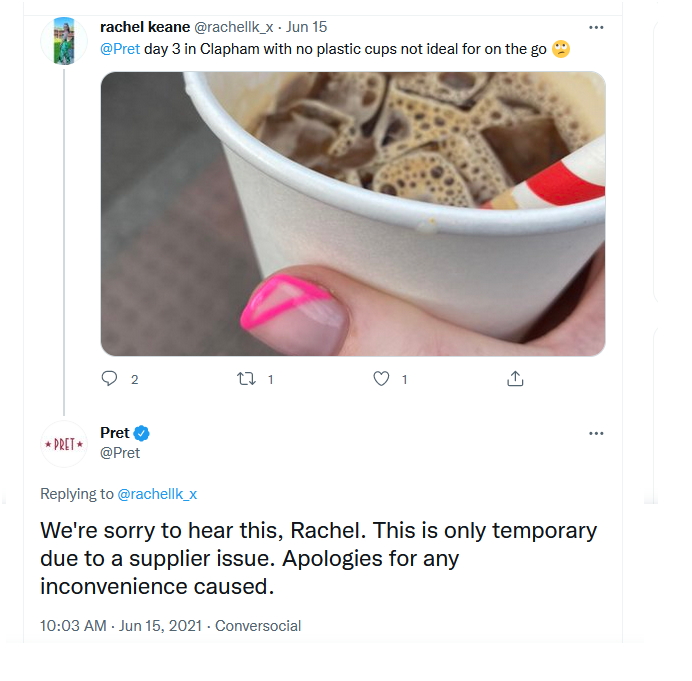 The plastic cups are back now as Pret can’t keep this on forever, but it went on for many weeks. Just one of MANY complaints:
