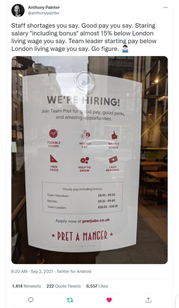After three and a half years of writing on Pret, mainly staff issues but also other issues, Pret has now disabled commenting for me on their Instagram and Facebook post from yesterday on “we’re hiring”! Why? Because I am causing too much staffing disruption! ๐ช๐๐