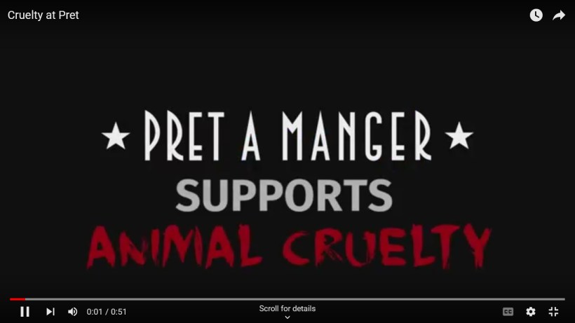 I then came across a video called “Cruelty in Pret” which was uploaded in July 2018, and it’s about chickens and the lack of welfare in farms. I bookmarked it like I do with most important or interesting issues.