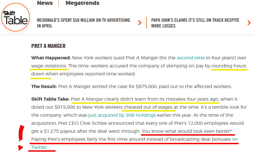 In a nutshell, Pret KEEP ripping staff off, y’all, just like they rip customers off via the coffee subscription, apps, special offer deals etc.