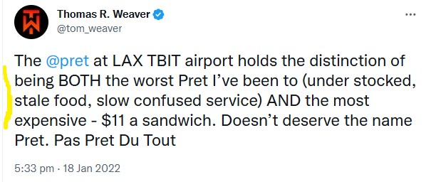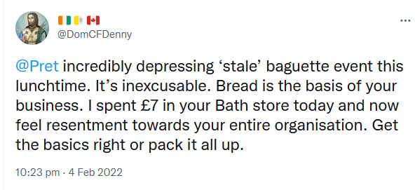 As more and more customers wake up to the reality of Pret, many who started boycotting Pret when they learnt how Pret cut wages etc. My alltime favourite tweet regarding Pret is: