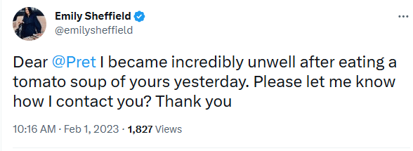 It is no surprise that Pret cannot be reached. Pret fired many, I’m sure the social media staff is also downsized. This soup sounds like it’s been re-heated 3-4 + times already. Again, keep in mind that Pret soups/porridge are cooked in factories and just re-heated in shops.