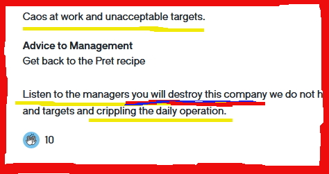 Please scroll down to the very bottom comment section. A great insight from an Ex Pret staff in the USA where the SAME issues happen like they do in the UK and everywhere else.