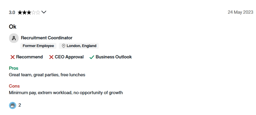 Recruitment Coordinator ยปMinimum pay, extreme workload, no opportunity of growthยซ (Side note, no wonder recruitment coordinator has to work hard with the high staff turn-over due to the exploitation and treating staff across the board like sh!t)