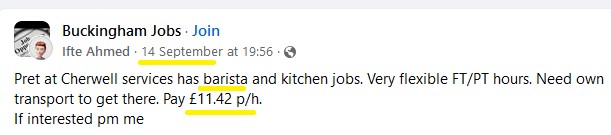 I explained since last year that there are ONLY very few baristas employed compared to other staff overall. And VERY FEW baristas get the ยฃ12.85 and if lucky the +ยฃ1.25 bonus = ยฃ14.10. And out of those baristas they work at airports and railways stations where it’s immensely busy and Pret pay all staff a few pennies more as well as charging customers more.