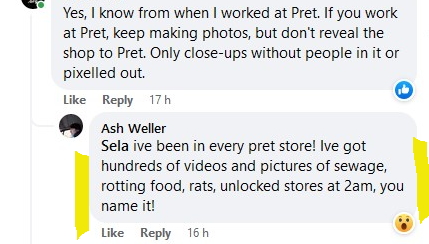 I have written, posted, streamed many times on Pret A Manger’s pest issues. I worked in a mice infested shop once and asked for a transferal to another shop as Pret’s internal pest control team couldn’t tackle the problem. We staff even stopped eating anything that was assembled like salads, sandwiches, and only ate anything that came in packaged like the pre-cooked soups in