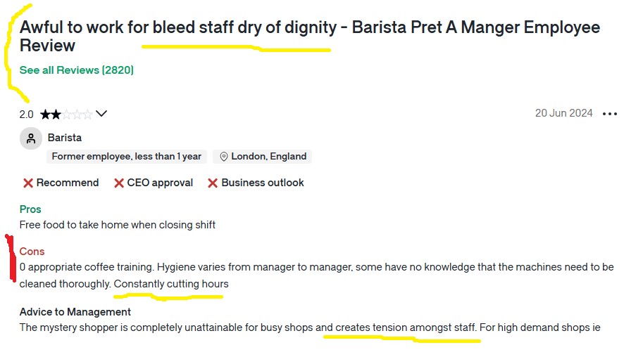 And I would not be a good former Pret employee if I wouldn’t end with recent Pret customer AND staff reviews. 😉