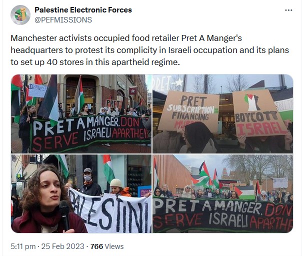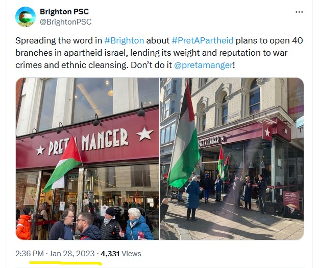 Around January 2023 pro-Palestine, and I call them pro-Hamas supporters, started demonstrating and calling for Pret boycotts when they learnt of Pret’s plans to open shops in Israel as Pret are tasked by their owners to double in size by 2026.
