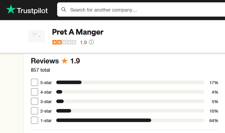 And 73% of customers on Trustpilot (1&2 star reviews combined as of Feb. 2025) disapprove of Pret on a variety of issues, many having sworn to never set foot inside Pret again. Hence, Sinclair Beecham was called back to fix the mess while Pano Christou is busy telling the media what a “rags to riches” star he is.