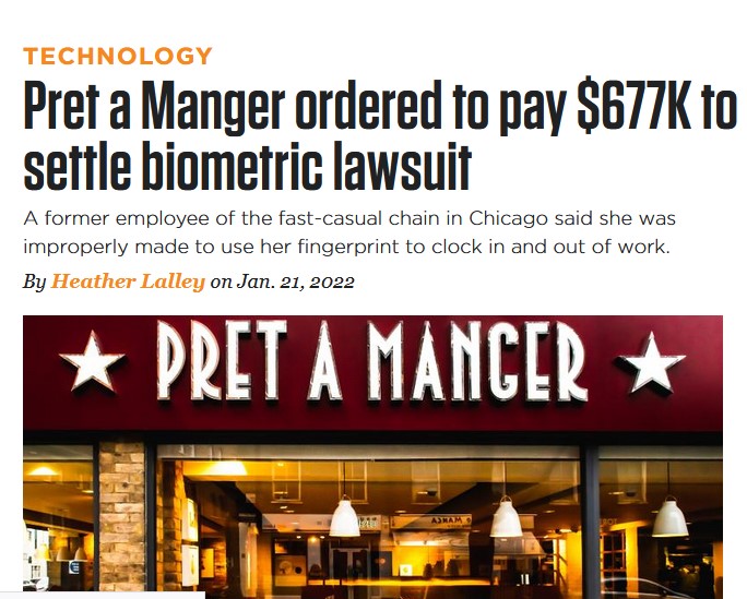 Pret were sued in the U.S. by ex staff for illegally taking fingerprints of staff to sign in and out of work.