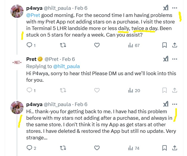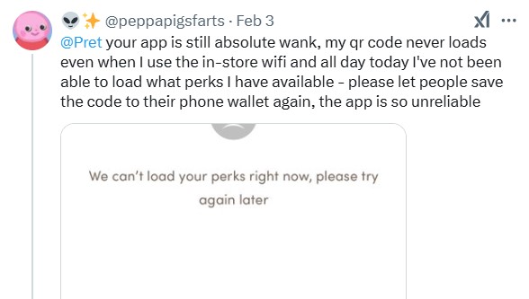 Further ways Pret cheat customers out of perks, half price deals, stars and perks dissappearing or never adding, weak wifi not able to login etc. etc. via the app.