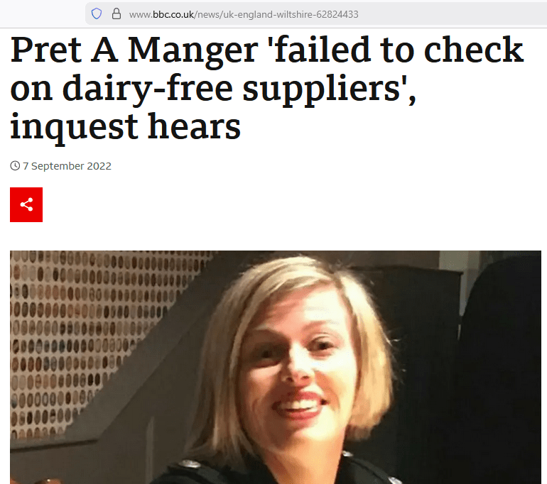 Now in this case, it wasn’t Pret’s fault as there have been issues with the plant-based supplier before and the lady who owns the company broke down in court, unlike Pret, who did business as usual until all this became public. BUT, Pret were reprimanded in the inquest for not doing checks of the suppliers.