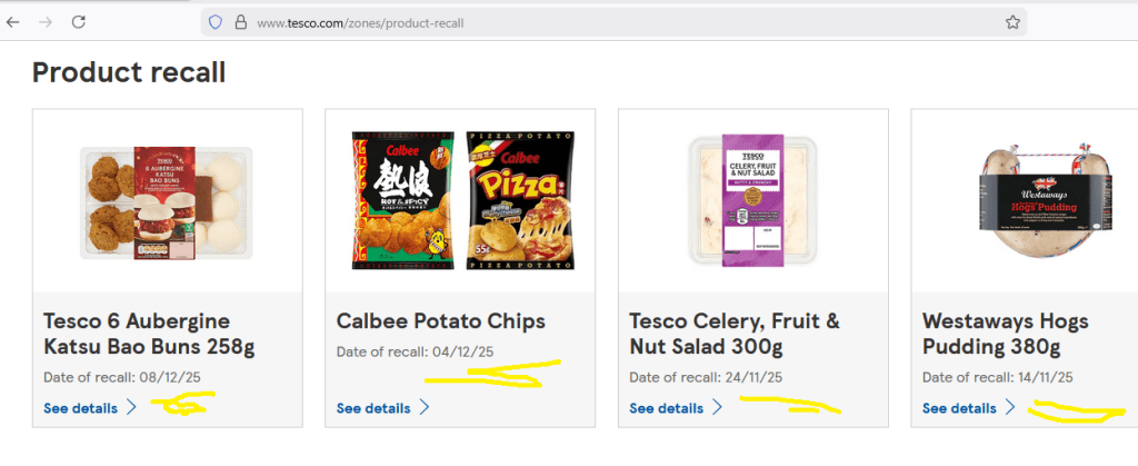Supermarkets have CONSTANTLY product recalls due to missing ingredients on the labels or mislabelling altogether. As I write this post on 11th December 2025, I checked various supermarkets on product recalls. One of the latest product recalls as I write is from Tesco on 8th December 2025 of “Tesco 6 Aubergine Katsu Bao Buns 258g” due to undeclared dairy in the product, the very ingredient Celia Marsh died of. She would have bought this item after reading the label and NOT seeing milk listed!