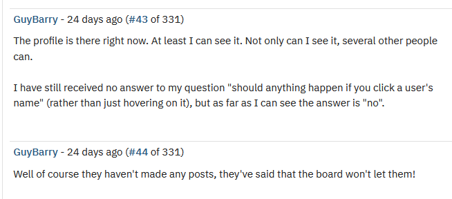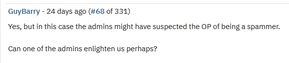 GuyBarry immediately accusing me of being a spammer, just from me asking a question in how the forum works as I couldn’t find a reply button. Immediate suspicion, immediate accusations etc. And the self-importance longtime users assume of the forum, not even assuming that a new user isn’t even interested in anything further in the forum, or busy with life. These kinds of exchanges between people are always good for a case study in how people assume or even fear etc.