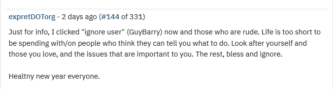 The toxicity on this platform makes me wonder if that was the reason that The Guardian shut down the forum years ago. I will send this blog entry to 2 journalists, one who is still with The Guardian, and the other who left into freelance journalism but still working with The Guardian. Of course they will say that they have no connection to the forum, but I’m intrigued why The Guardian forum got closed. I wouldn’t be surprised if it’s due to those toxic people whose lives seem to evolve around getting the one little bit of power they might need to boost their insecure egos.
