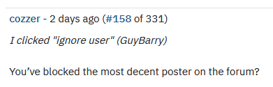 But for GuyBarry to be so obsessive for days asking if I’m still there (while I forgot for 3 weeks about that site) and then once I responded, him going into power-tripping mode was enough to immediately poke back and then block (ignore) him.