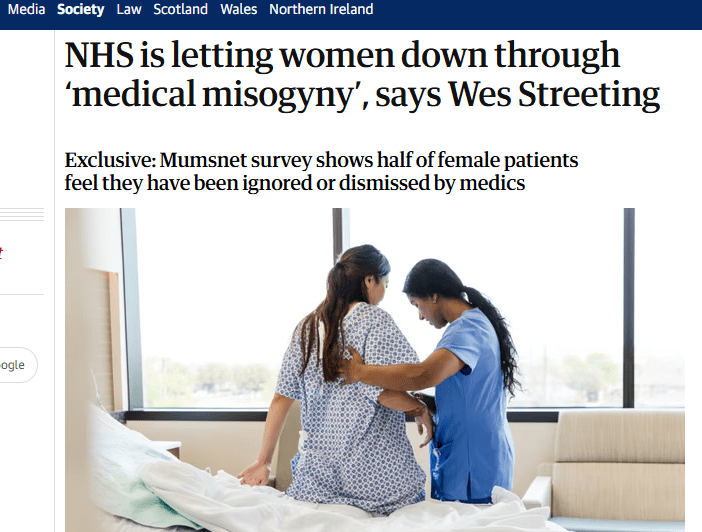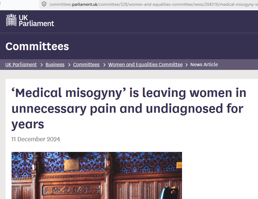 Medical misogyny in the UK amongst above UK Government report, Guardian article: