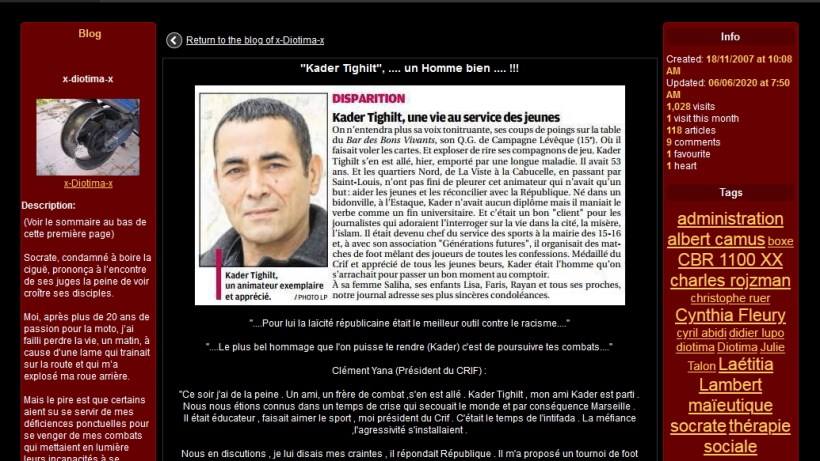 And a Tweet about a tribute after his death, from the French translated into English, quote: “Kader TIGHILT, A Republican tribute organized by the Town Hall of the 15th and 16th of Marseille” End of quote.