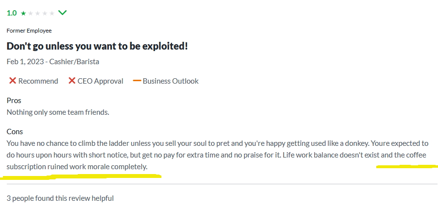 Not to mention the ongoing complaints on Pret’s bad coffee: