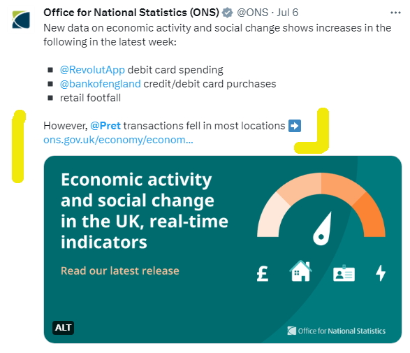 The Office of National Statistic, that seems to be obsessed with Pret, has tweeted several times over the last few months that Pret sales have decreased in MOST locations. I believe this is also due to Pret pushing the subscription too aggressively to make FAST money and to collect data quicker.