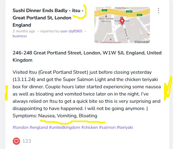 READ the complaints, reports and reviews of customers from every country who suffers with food poisoning.