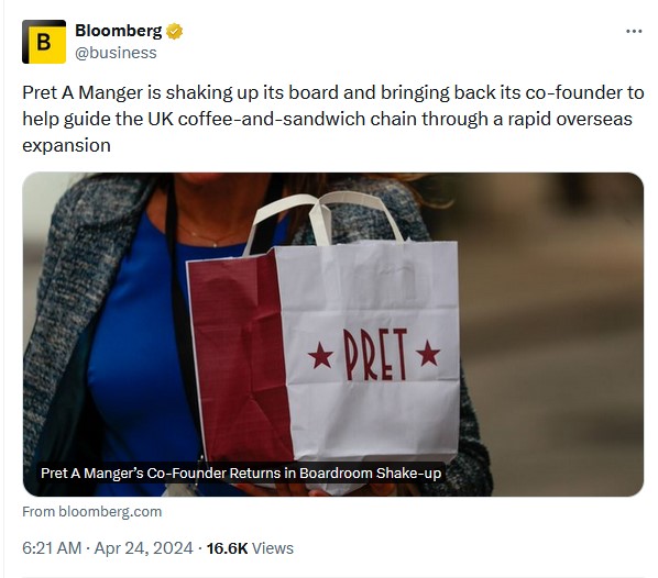 Yep, CEO Pano Christou doesn’t cope. It’s like Prime Minister Rishi Sunak bringing back former PM David Cameron. Pret really need a COMPLETE shake-up as in, fire all the old top execs who are stuck in Pret’s old “love-bombing” way where they pride themselves to be hiring according to “personality” rather than skill! Replace the whole of HQ with innovative AND courageous leaders.