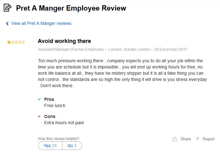 The following is THE MOST poignant former Pret staff review I have come across, and I have read them ALL!