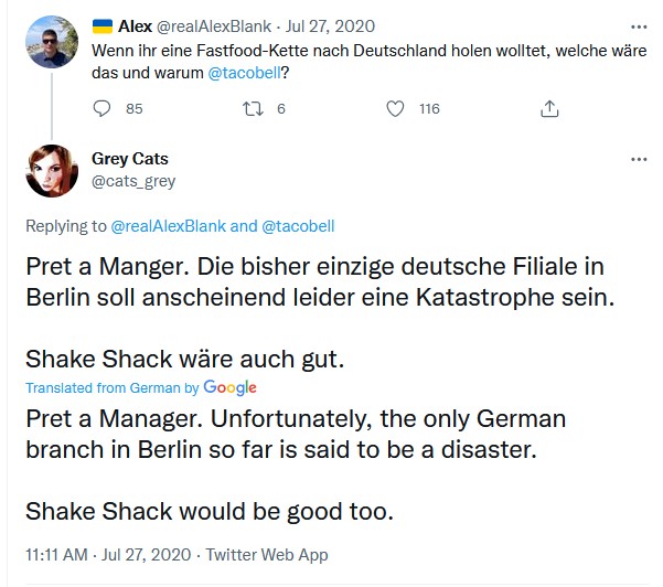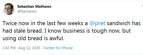 There people can go and complain because Twitter is out-dated, and Pret know it ๐